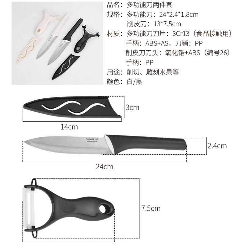多功能刀两件套水果刀蔬果刨丝器/瓜果刀【不锈钢/颜色自选】 |