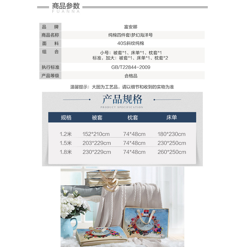 梦幻海洋号 床单四件套(被套1件床单1件枕套2件)(适合1.5米床)【纯棉/蓝】 |