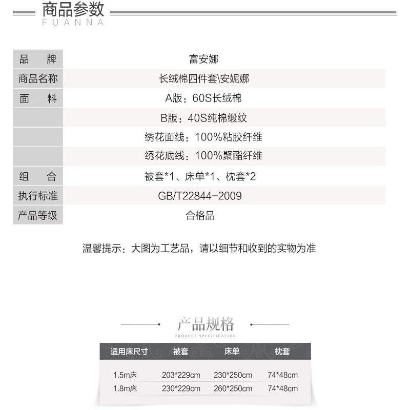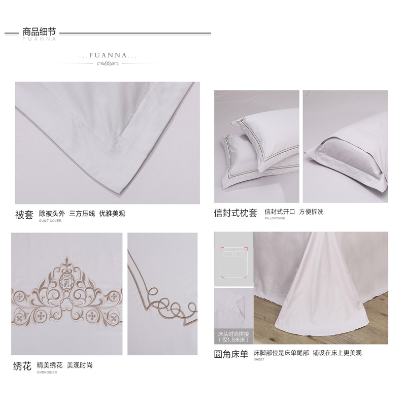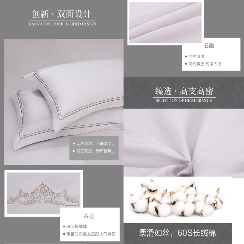 安妮娜 床单四件套(被套1件床单1件枕套2件)(适合1.8米床)【纯棉/灰色】 |