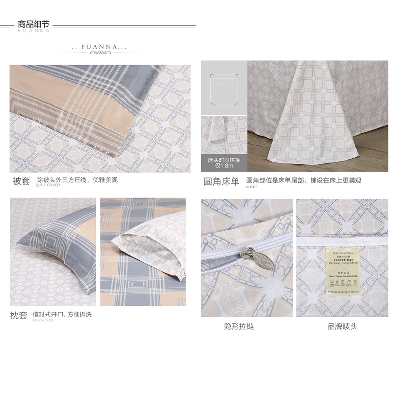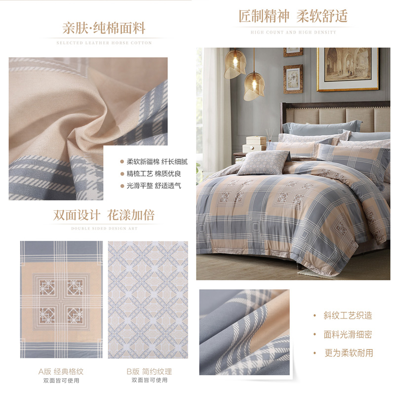 格调时光 床单四件套(被套1件床单1件枕套2件)(适合1.5米床)【40支纯棉/黄】 |