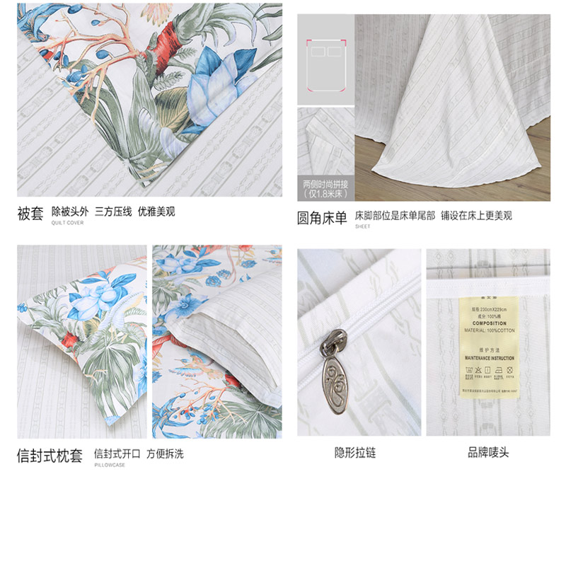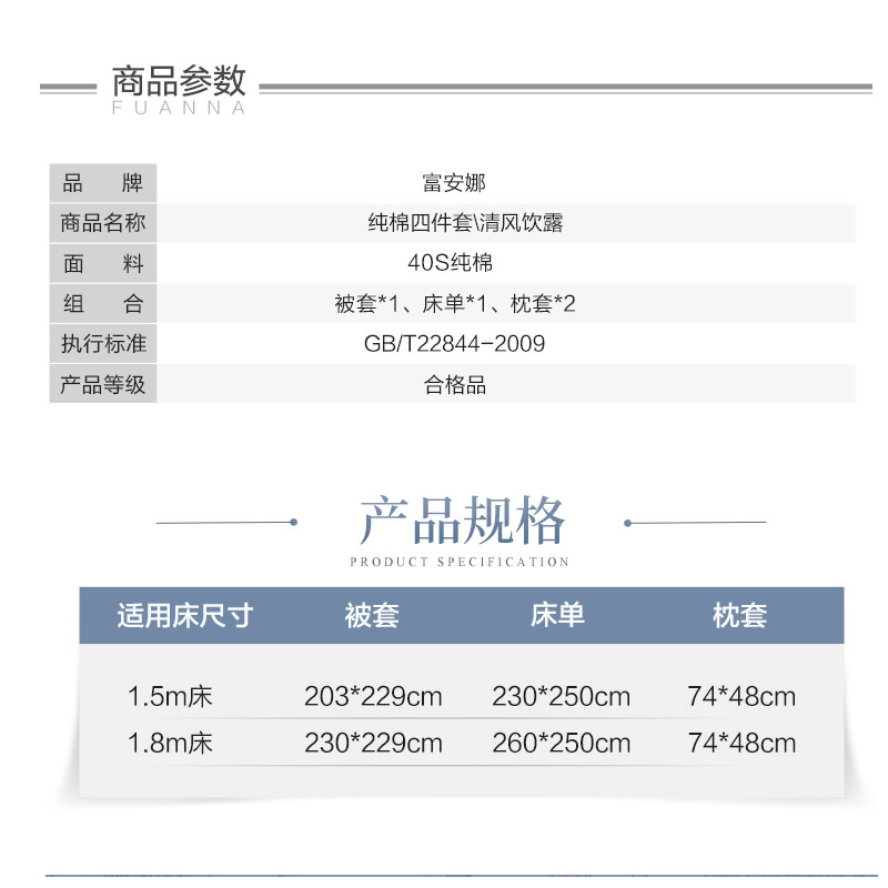 清风饮露 床单四件套(被套1件床单1件枕套2件)(适合1.8米床)【40支纯棉/绿】 |