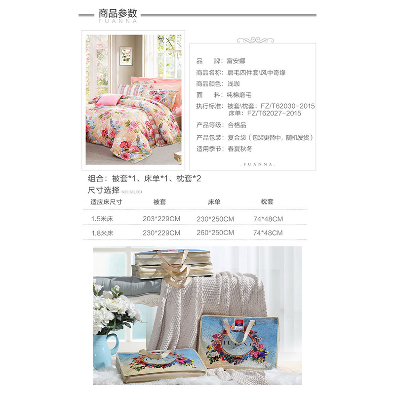 风中奇缘 床单四件套(被套1件床单1件枕套2件)(适合1.5米床)【纯棉磨毛/浅咖】 |