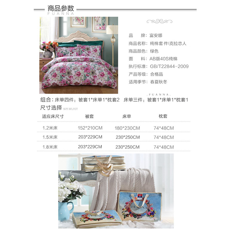 克拉恋人 床单三件套(被套1件床单1件枕套1件)(适合1.2米床)【纯棉/绿】 |