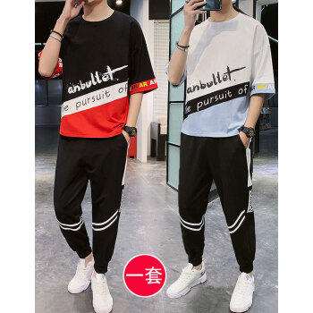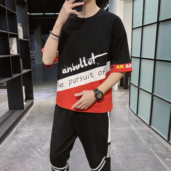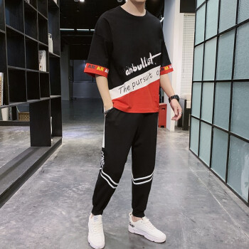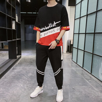 班迪普【运费险】卫衣套装T恤男运动服短袖男装春夏新款透气韩版休闲潮牌中青少年大码胖子工装长裤子男 黑色 L/建议120-135斤 |