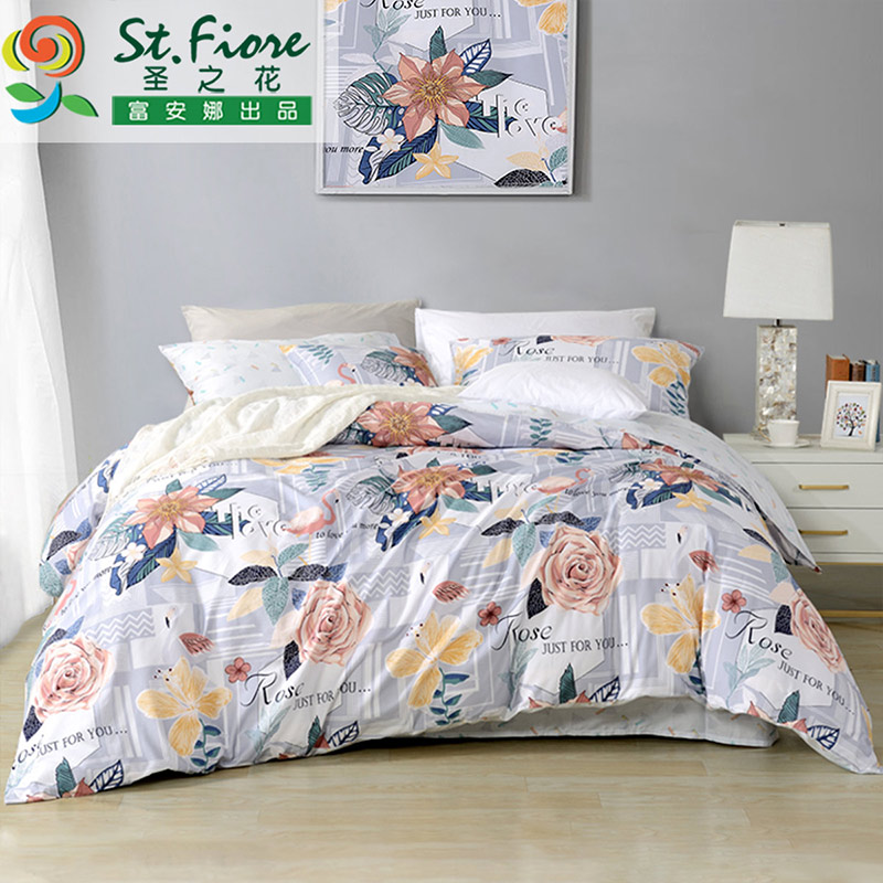 玫瑰恋歌 床单四件套(被套1件床单1件枕套2件)(适合1.5米床)【纯棉/灰】 |