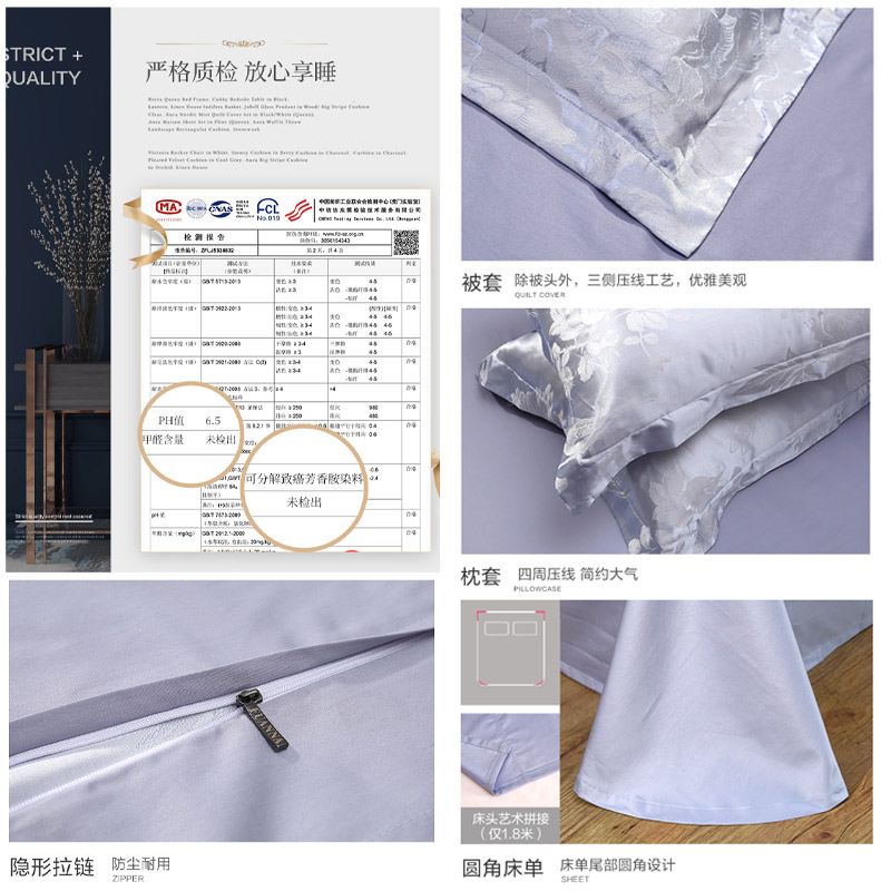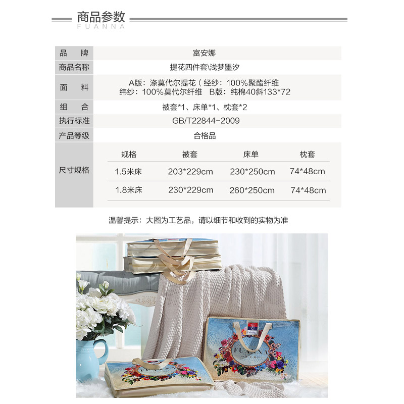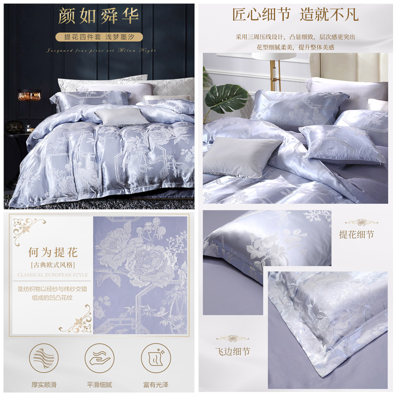 浅梦墨汐 床单四件套(被套1件床单1件枕套2件)(适合1.8米床)【A版:涤莫代尔提花;B版:纯棉/灰】 |