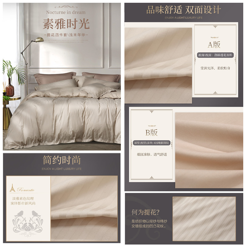 浅末年华 床单四件套(被套1件床单1件枕套2件)(适合1.8米床)【A版:涤棉提花;B版:纯棉/咖啡】 |