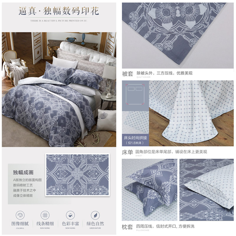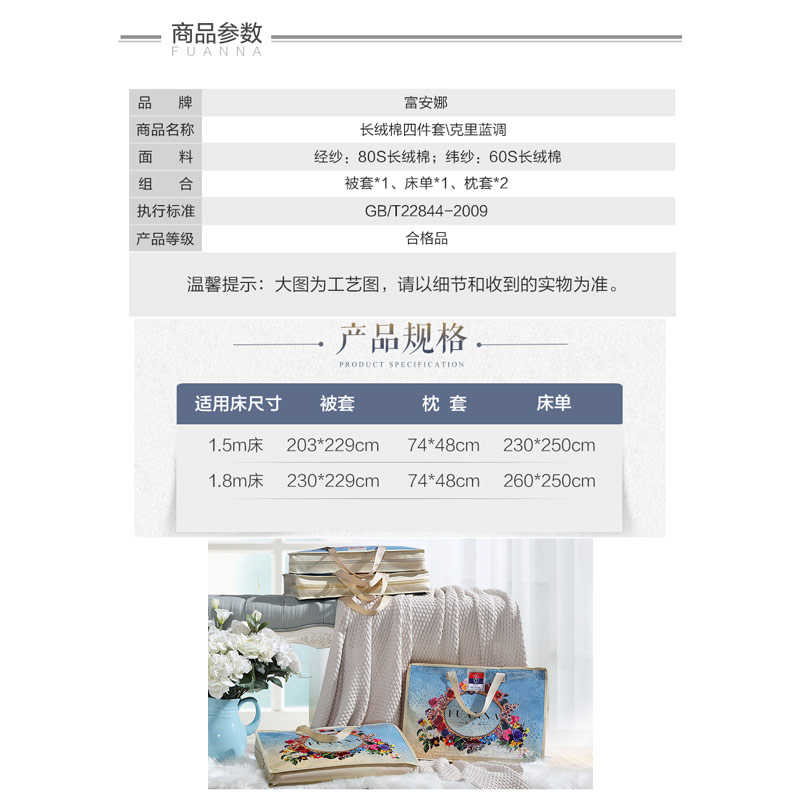 克里蓝调 床单四件套(被套1件床单1件枕套2件)(适合1.8米床)【长绒棉/蓝】 |