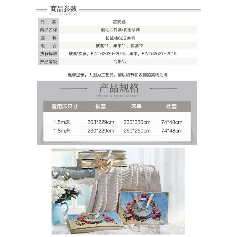 北榭倾城 床单四件套(被套1件床单1件枕套2件)(适合1.5米床)【纯棉磨毛/蓝】 |