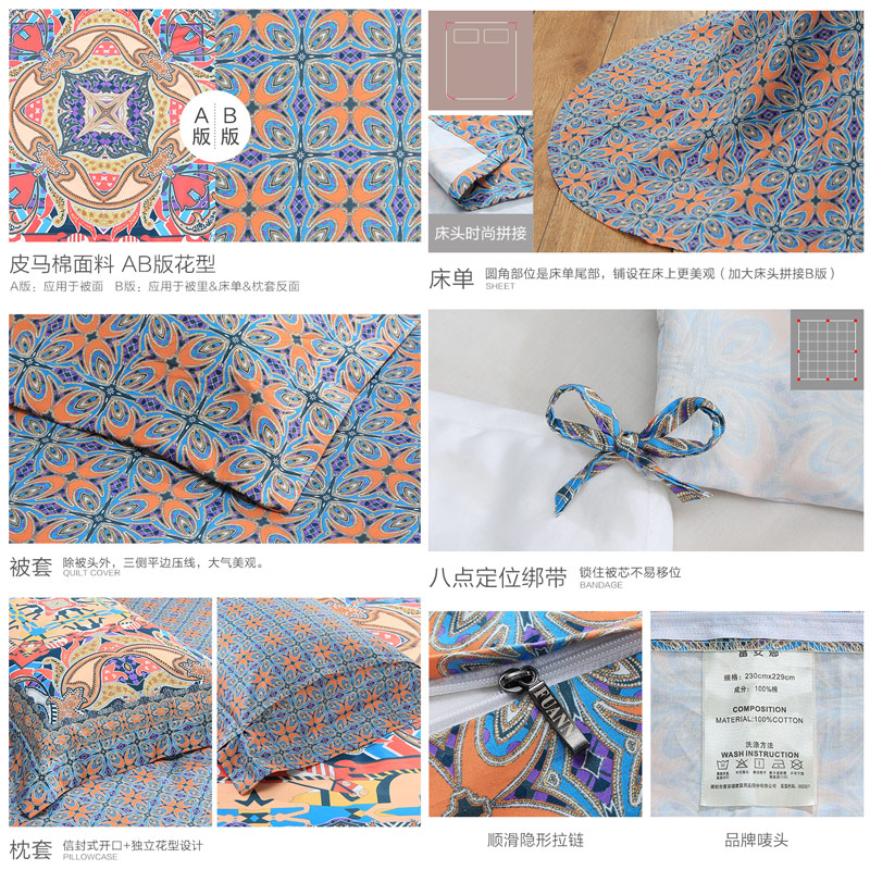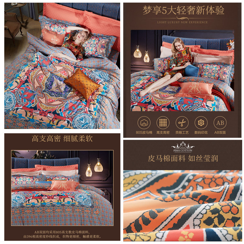 奥伦堡 床单四件套(被套1件床单1件枕套2件)(适合1.8米床)【皮马棉/橙】 |