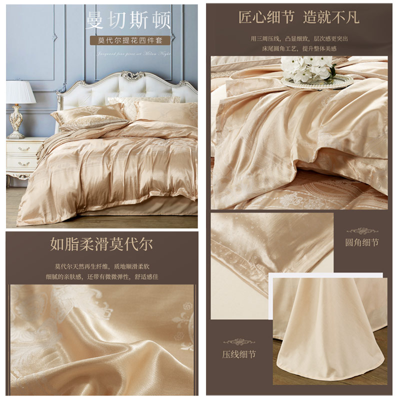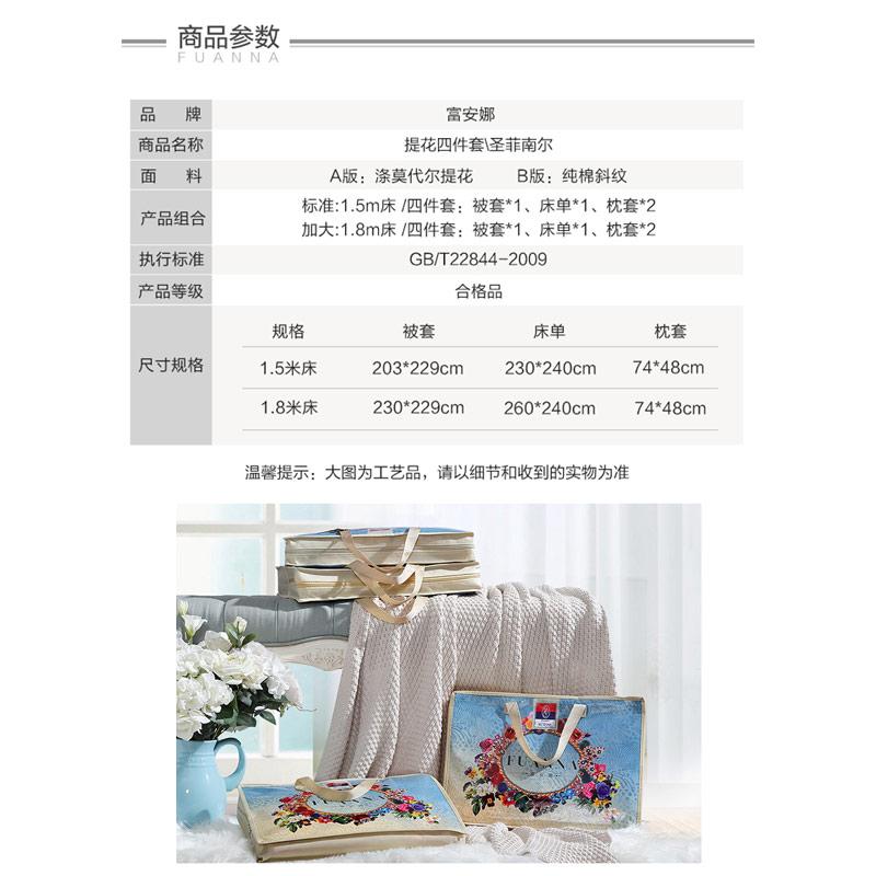 圣菲南尔 床单四件套(被套1件床单1件枕套2件)(适合1.8米床)【A版:涤莫代尔提花;B版:纯棉/黄】 |