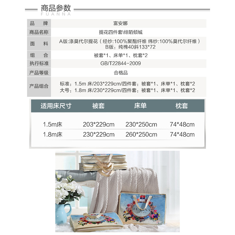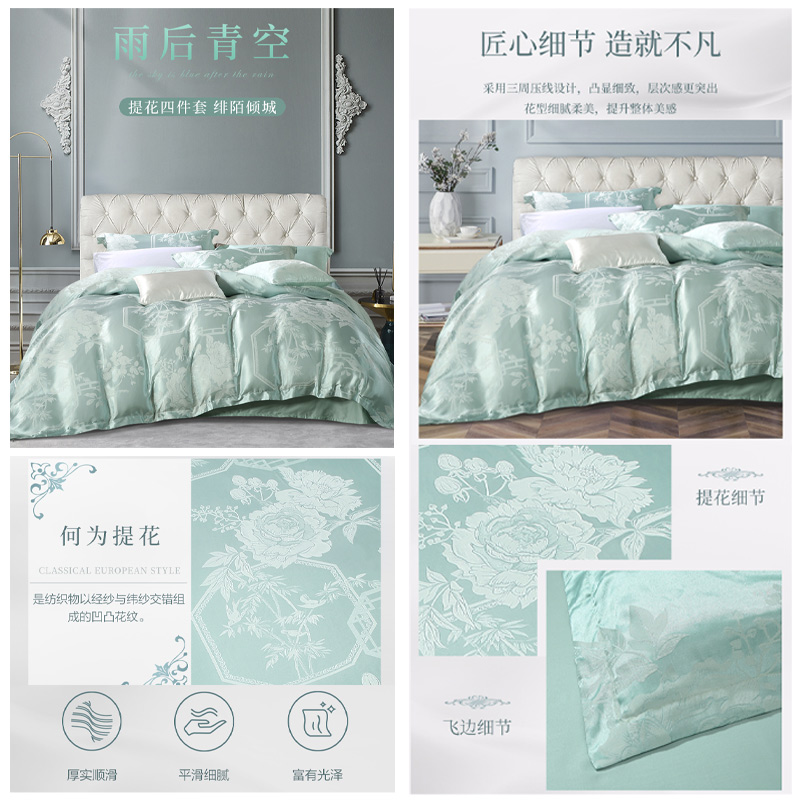 绯陌倾城 床单四件套(被套1件床单1件枕套2件)(适合1.5米床)【A版:涤莫代尔提花;B版:纯棉/绿】 |