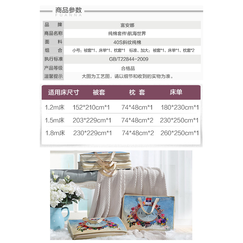 航海世界 床单四件套(被套1件床单1件枕套2件)(适合1.8米床)【纯棉/紫】 |