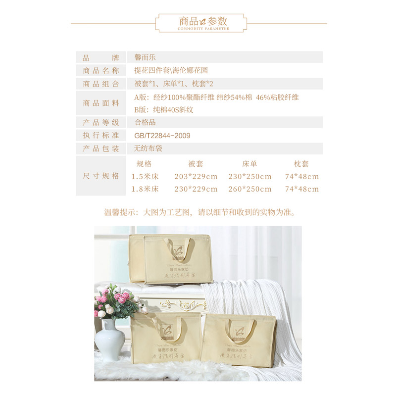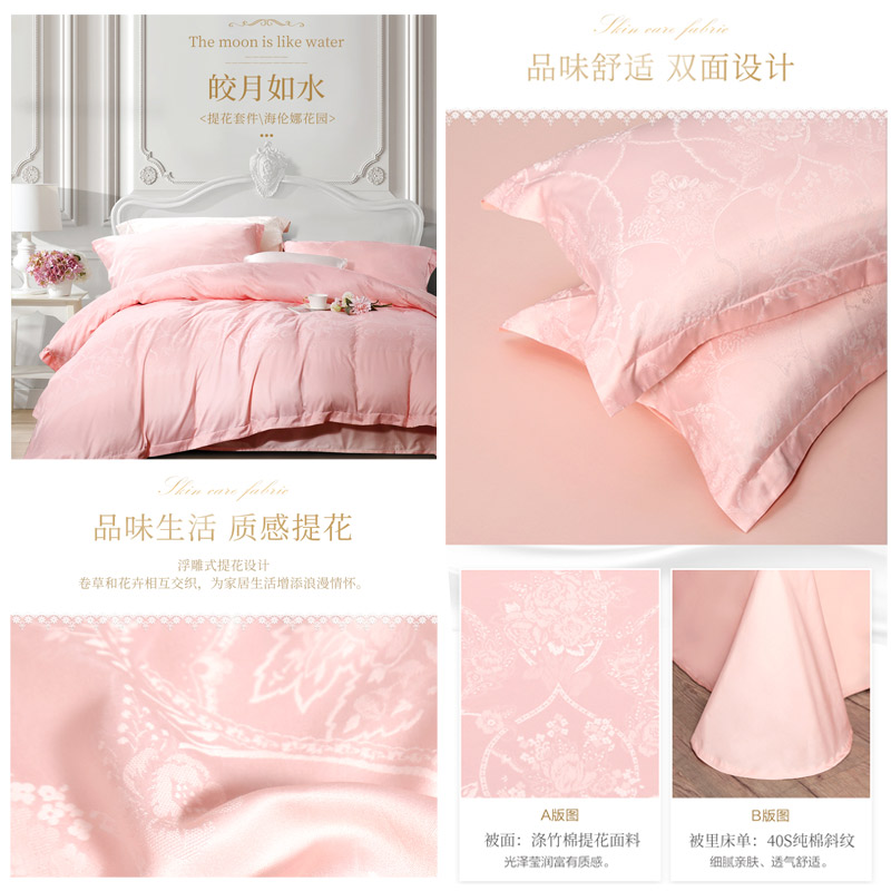 海伦娜花园 床单四件套(被套1件床单1件枕套2件)(适合1.5米床)【A版:聚酯纤维+棉+粘胶纤维;B版:纯棉/粉】 |