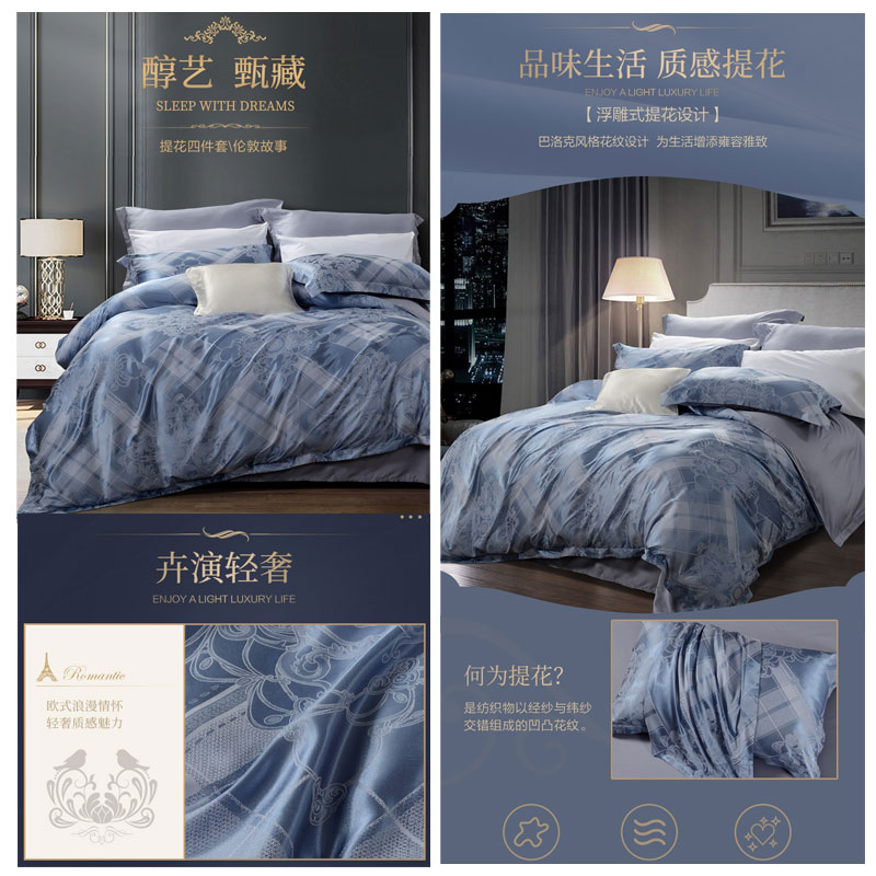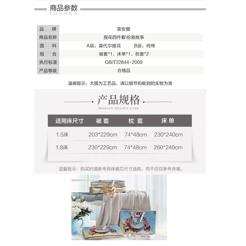 伦敦故事 床单四件套(被套1件床单1件枕套2件)(适合1.8米床)【A版:莫代尔提花;B版:纯棉/蓝】 |