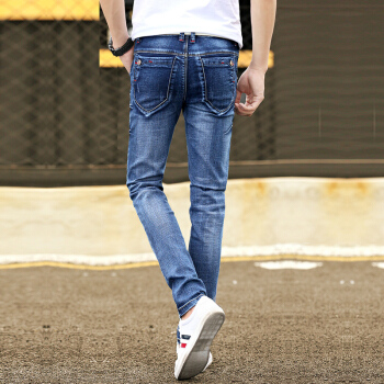 牛仔裤男修身春夏季韩版休闲裤男弹力小脚裤子男士时尚水洗牛仔青少年运动长裤男装潮 005浅蓝 30-2尺3 |