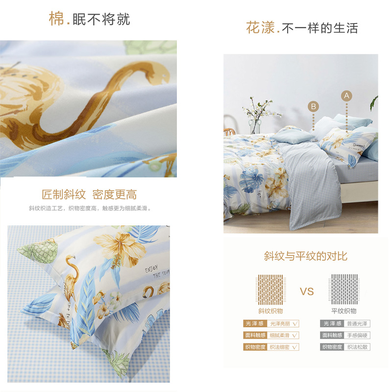 丛林夏梦 床单三件套(被套1件床单1件枕套1件)(适合1.2米床)【纯棉/蓝】 |