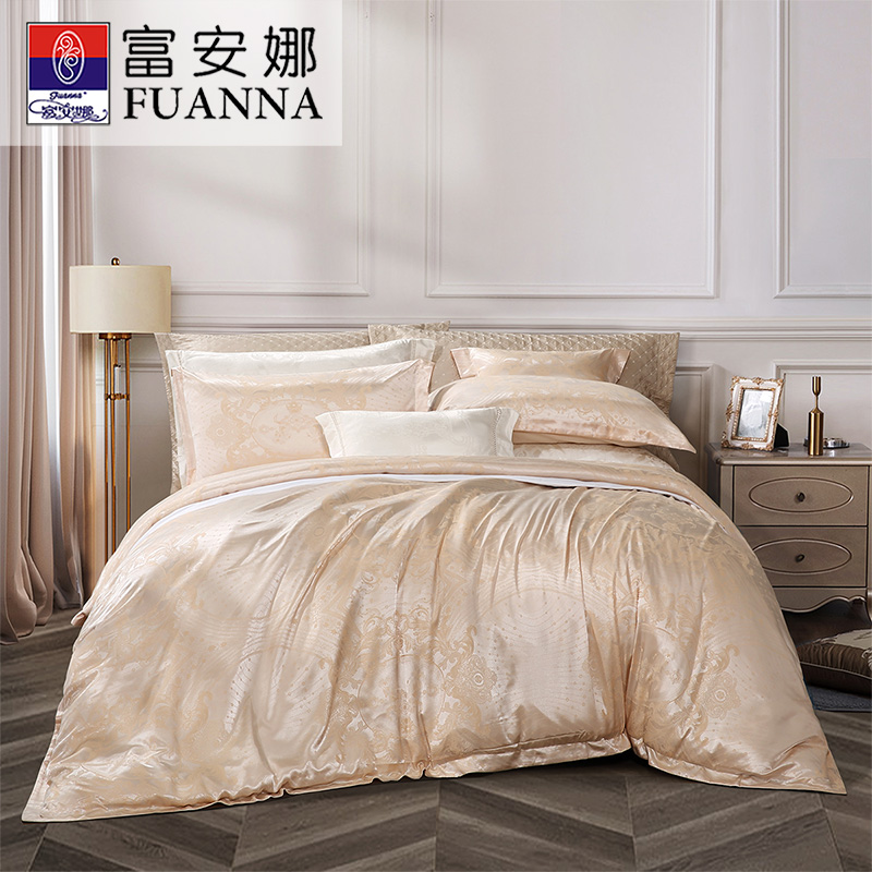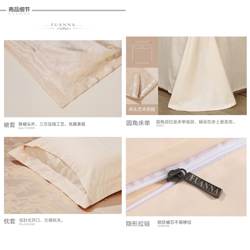 琉璃菲尔 床单四件套(被套1件床单1件枕套2件)(适合1.5米床)【涤莫代尔提花/浅黄】 |