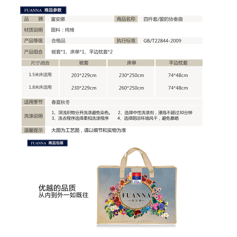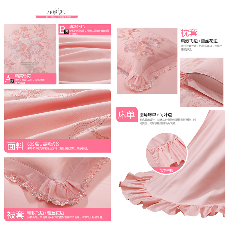 爱的协奏曲 床单四件套(被套1件床单1件枕套2件)(适合1.8米床)【棉/粉】 |