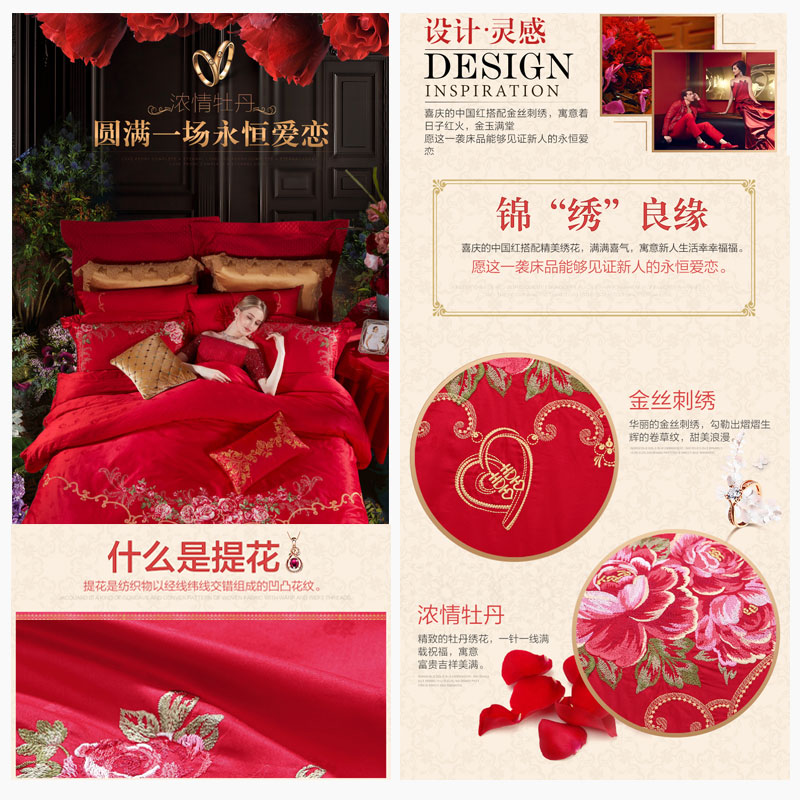 永恒爱恋 床单六件套(被套1件床单1件枕套4件)(适合1.8米床)【纯棉提花/红】 |