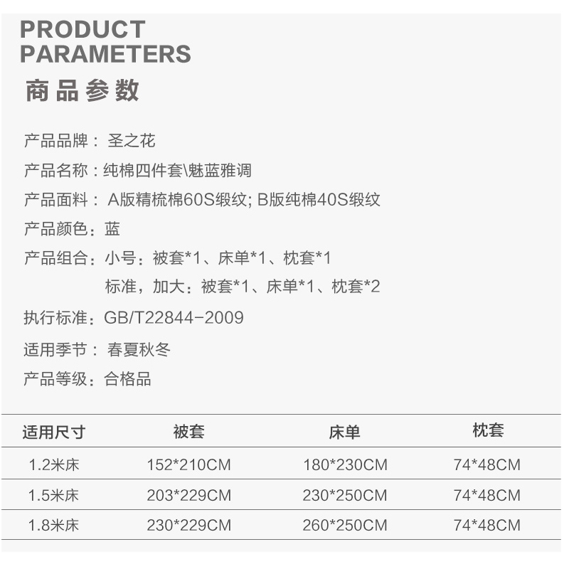 魅蓝雅调 床单四件套(被套1件床单1件枕套2件)(适合1.5米床)【纯棉缎纹/蓝】 |