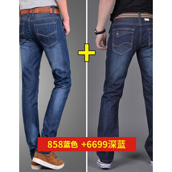 【店长推荐 99元两条】牛仔裤男春夏季新款男士男裤休闲款修身直筒裤子男装 6699深蓝+858蓝色 30(腰围=2尺3) |