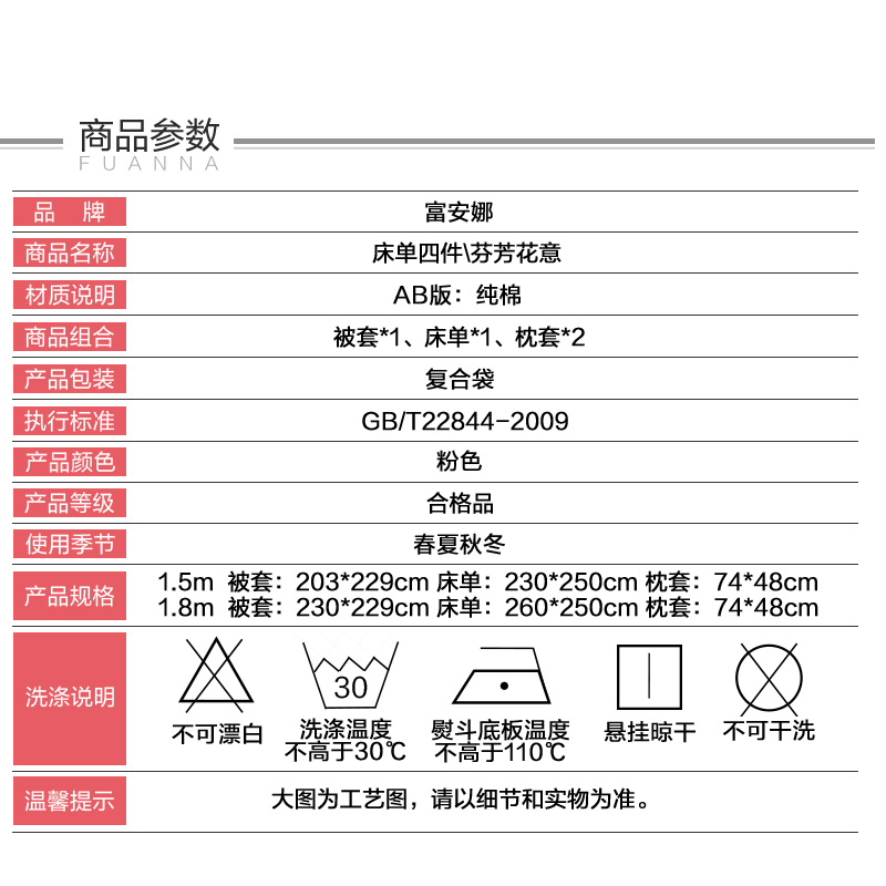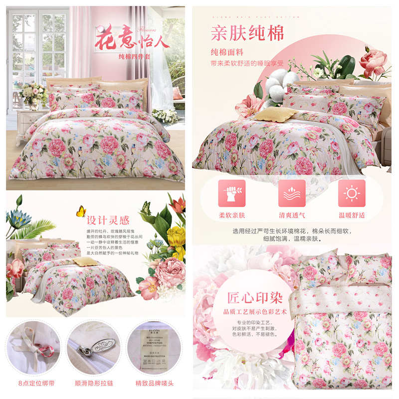 芬芳花意 床单四件套(被套1件床单1件枕套2件)(适合1.5米床)【纯棉/粉】 |