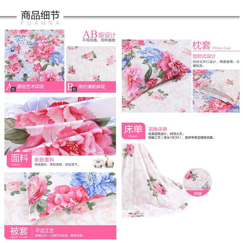 巴黎映彩 床单四件套(被套1件床单1件枕套2件)(适合1.5米床)【纯棉/红】 |