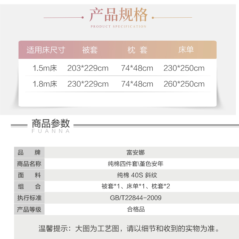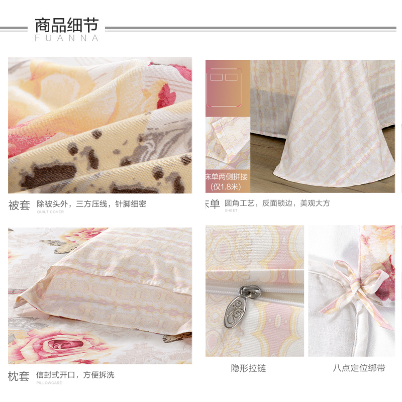 堇色安年 床单四件套(被套1件床单1件枕套2件)(适合1.8米床)【纯棉/粉】 |