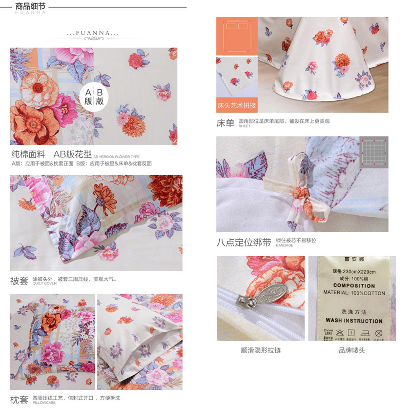 秋韵冬影 床单四件套(被套1件床单1件枕套2件)(适合1.8米床)【40支斜纹133*72/橙】 |