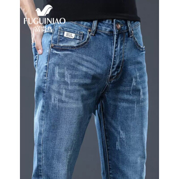 富贵鸟牛仔裤男士夏季新品韩版潮流修身小脚裤休闲弹力裤子男裤 8913深灰 30 |