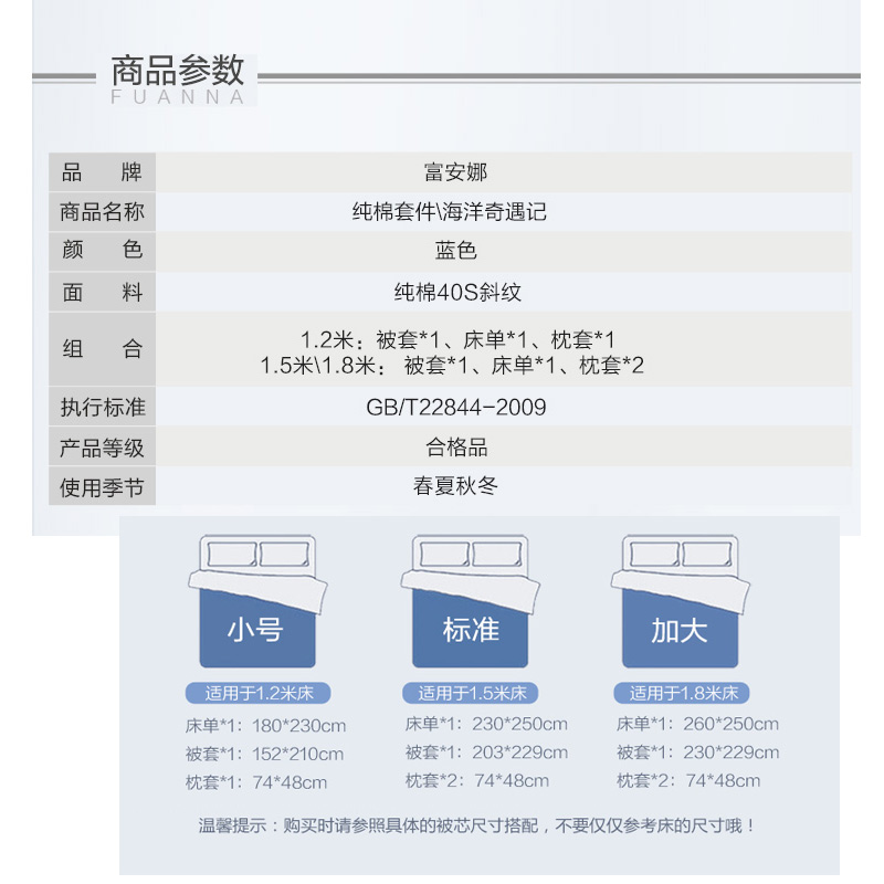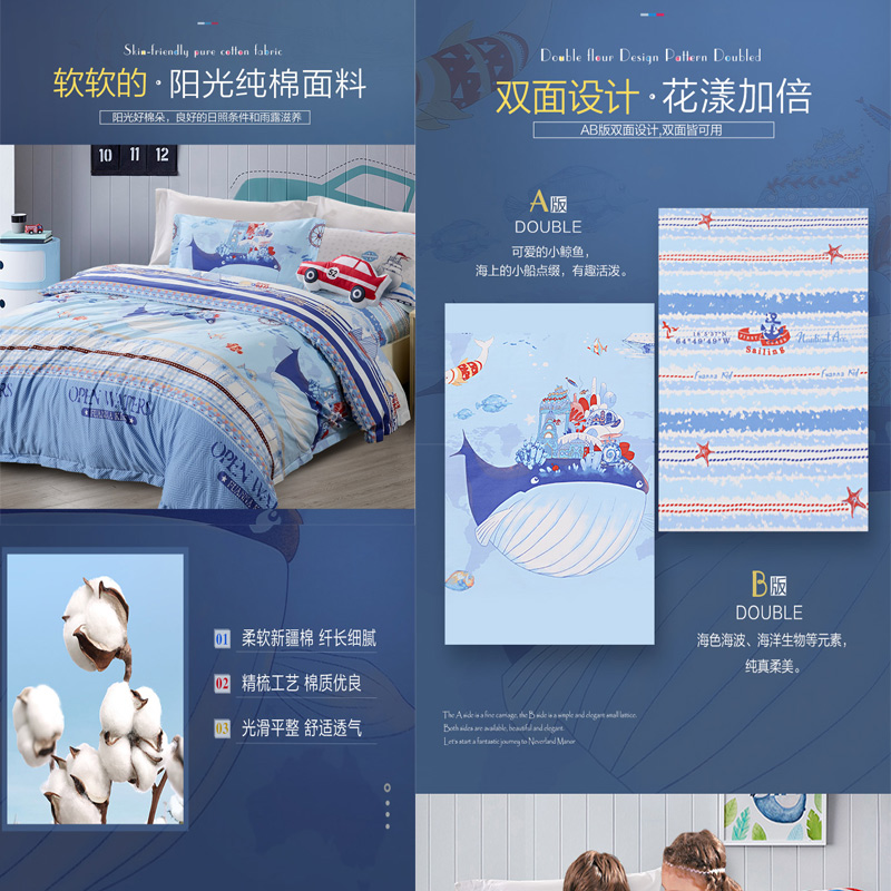 海洋奇遇记 床单四件套(被套1件床单1件枕套2件)(适合1.5米床)【纯棉/蓝】 |