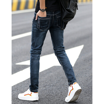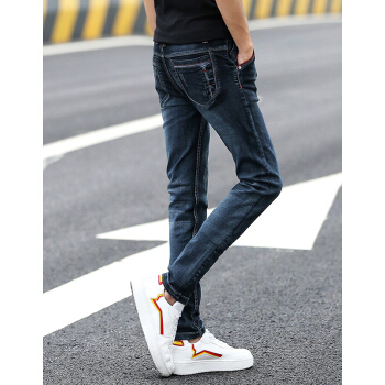 慕思莱牛仔裤男春夏薄款男装男士修身透气潮流长裤韩版休闲弹力破洞小脚裤子男生直筒宽松长裤夏季男裤 02深蓝色 31码-2尺4 |
