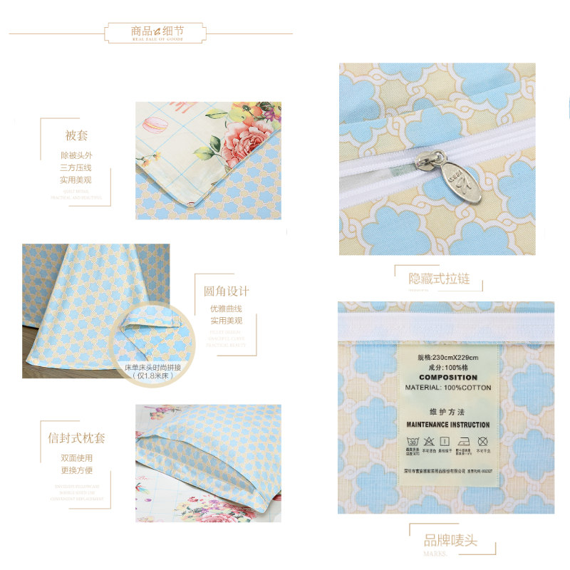 秋庭宴 床单四件套(被套1件床单1件枕套2件)(适合1.8米床)【面料:纯棉40支斜纹/黄】 |