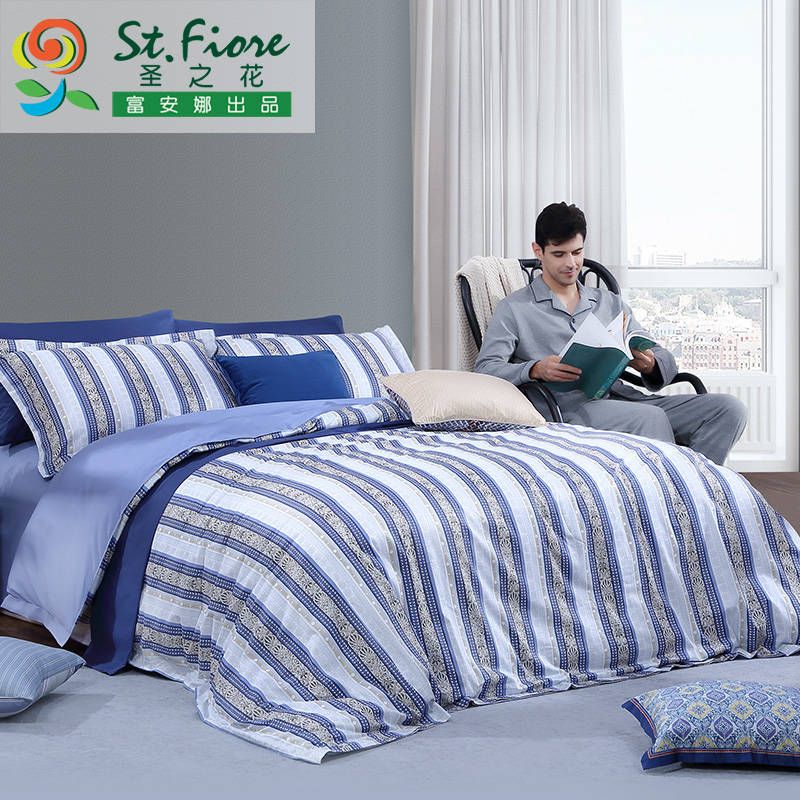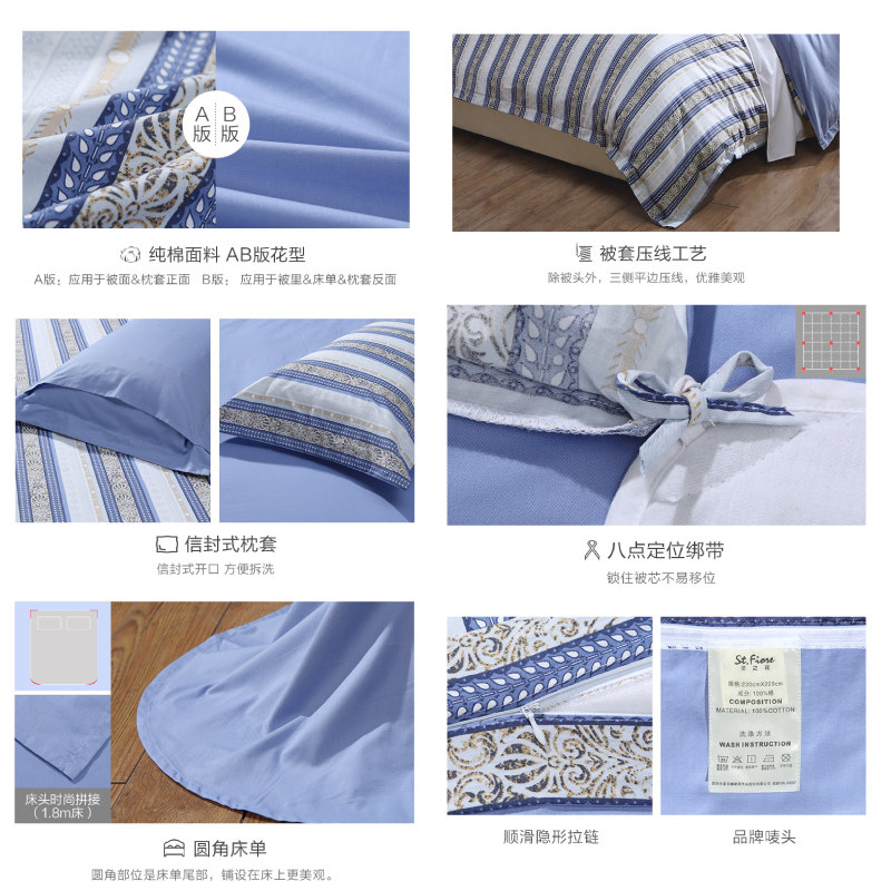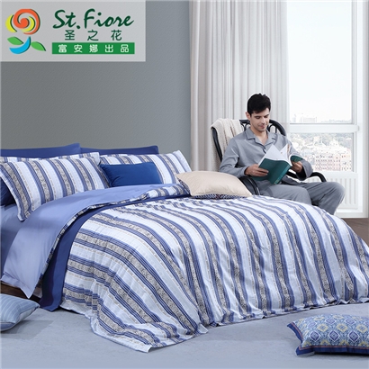 条纹 床单四件套(被套1件床单1件枕套2件)(适合1.8米床)【面料:纯棉40支斜纹/蓝】 |