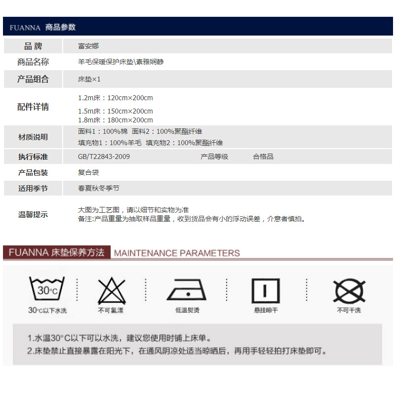 羊毛保暖床垫 橡筋款(床垫1件)(适合1.5米床)【面料:聚酯纤维;填充:羊毛+聚酯纤维/米黄】 |