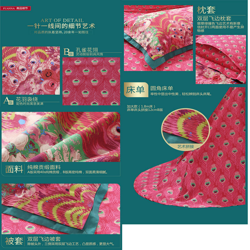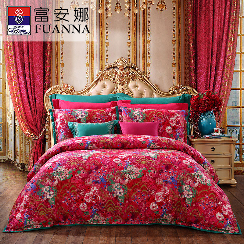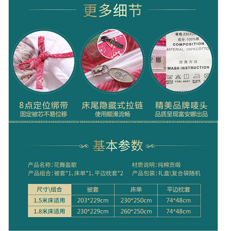 花舞盈歌 床单四件套(被套1件床单1件枕套2件)(适合1.5米床)【纯棉缎纹/红】 |