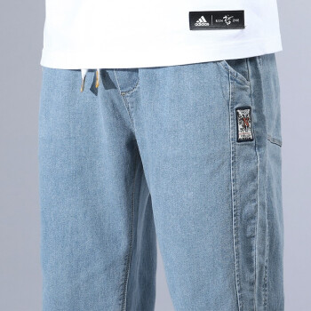 富贵鸟男装裤子男新品纯色棉工装裤休闲裤韩版修身大码牛仔裤男士束脚九分裤裤男卫裤裤直筒下装 浅蓝色 XL(30/2尺3) |