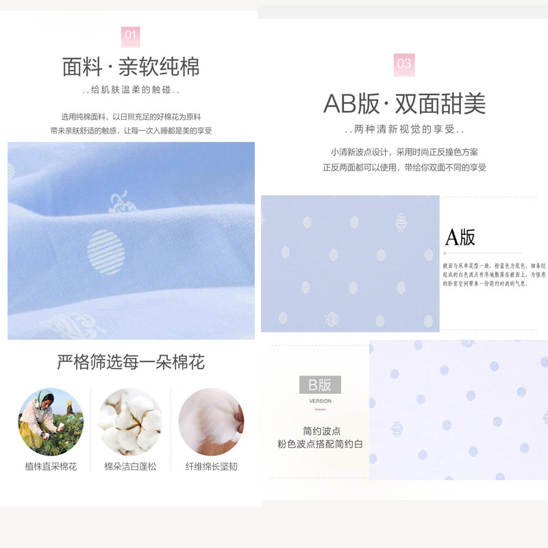 清新波点 床单四件套(被套1件 床单1件枕套2件)(适合1.5米床)【纯棉/浅蓝】 |