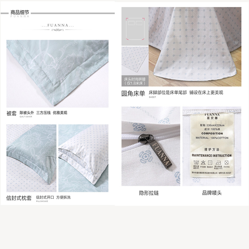 贾斯汀 床单四件套(被套1件床单1件枕套2件)(适合1.5米床)【40支缎纹纯棉133*95/灰】 |