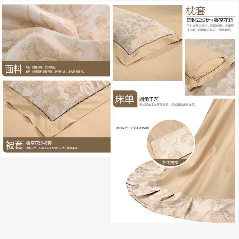 广岛之恋 床单四件套(被套1件 床单1件 枕套2件)(适合1.5米床)【面料1:涤粘提花;面料2纯棉/黄】 |