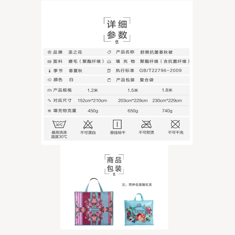 舒爽抗菌春秋被(被芯1件)(适合1.5米床)【面料:全涤磨毛;填充物:抗菌纤维/白】 |