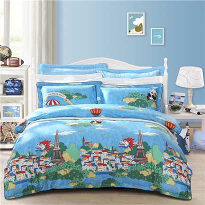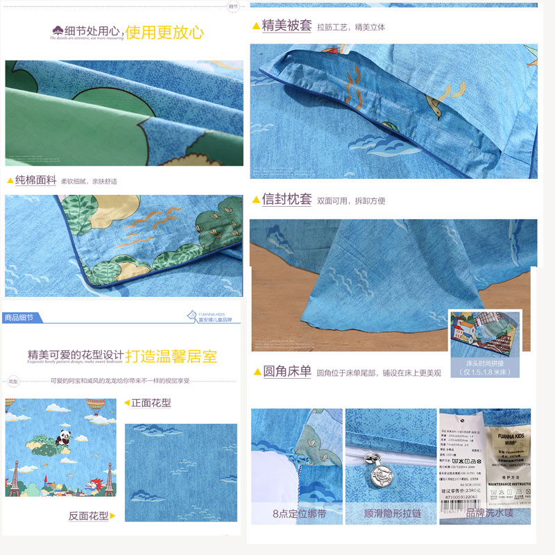阿宝环游世界 床单三件套(适用1.2米床)(被套1件床单1件枕套1件)【纯棉/蓝】 |