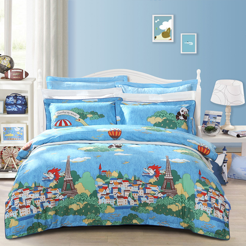 阿宝环游 世界床单四件套(适用1.5米床)(被套1件床单1件枕套2件)【棉/蓝】 |
