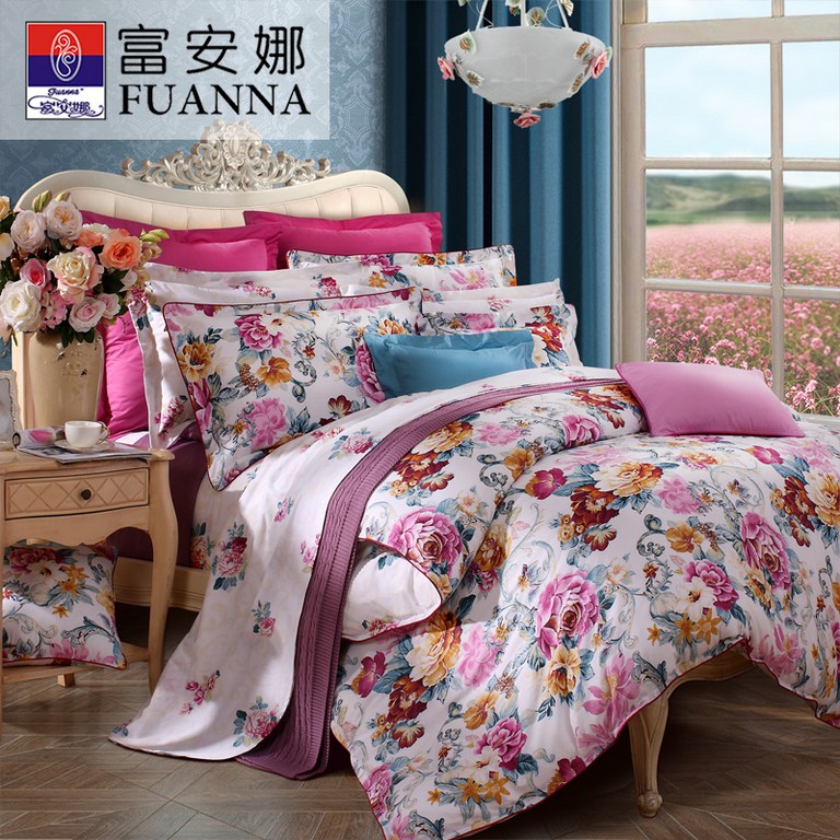 花韵倾城印花四件套(被套一件床单一件枕套两件)(适用1.5米床)【纯棉/紫】 |