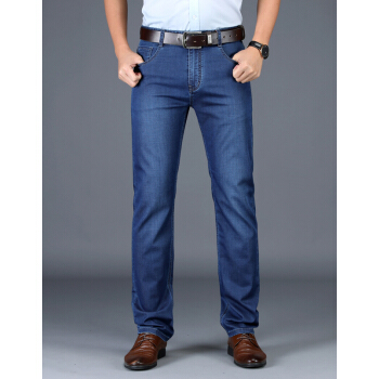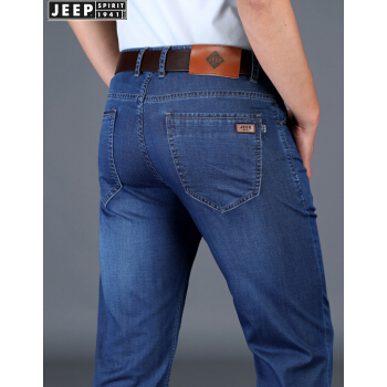 吉普JEEP牛仔裤男直筒薄款裤子男夏季新款商务休闲男装长裤微弹力男裤 2180#薄款 蓝色 33(腰围2尺5) |