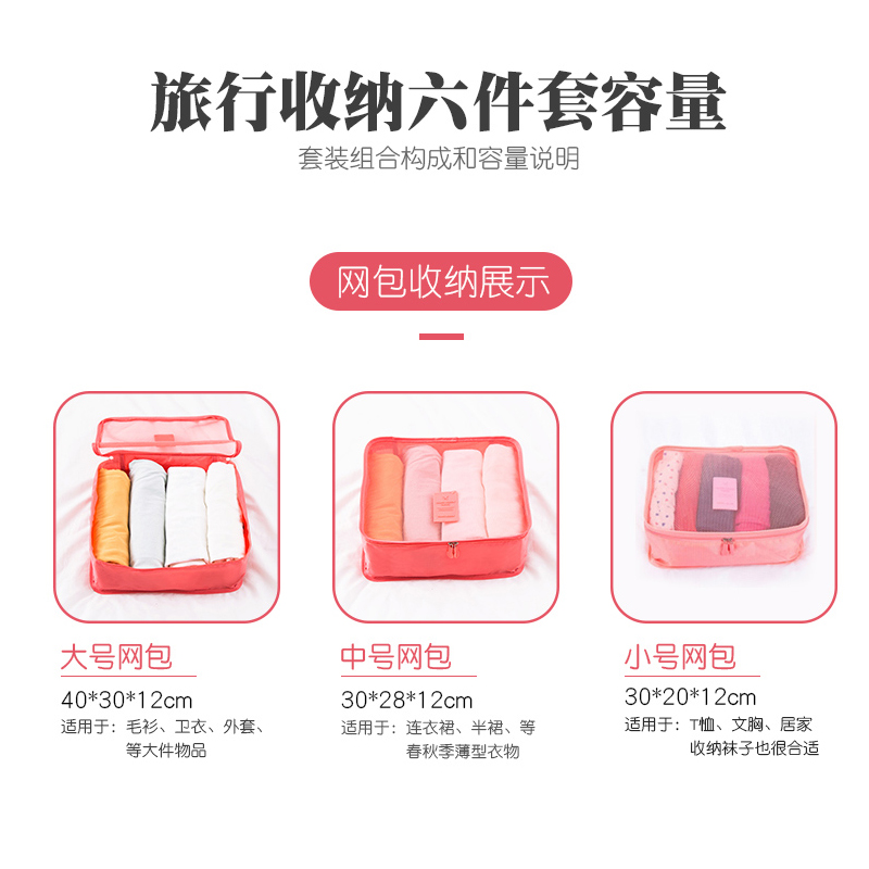 旅行收纳袋六件套【涤纶/嫩粉色】 |