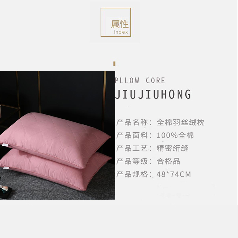 全棉大方格枕芯羽丝绒枕头【面料全棉填充羽丝绒/全棉枕豆沙粉】 |