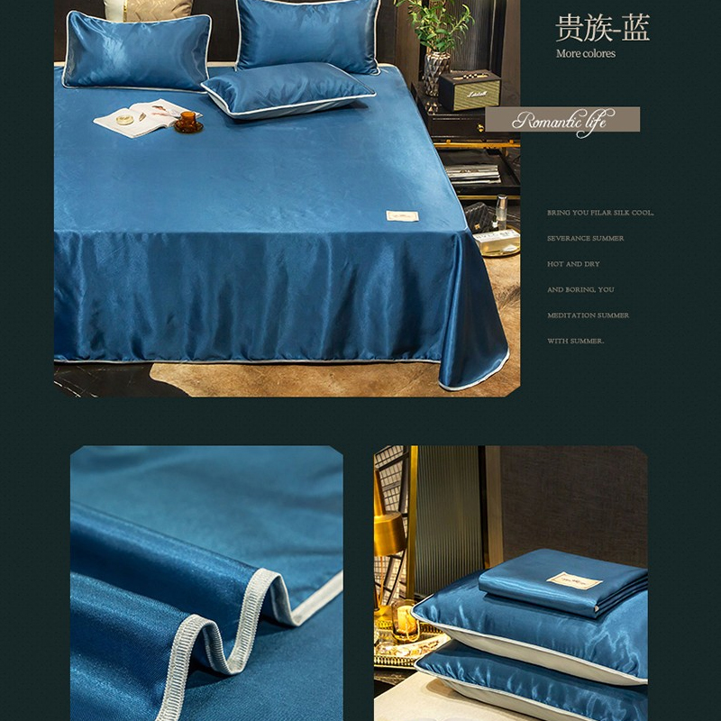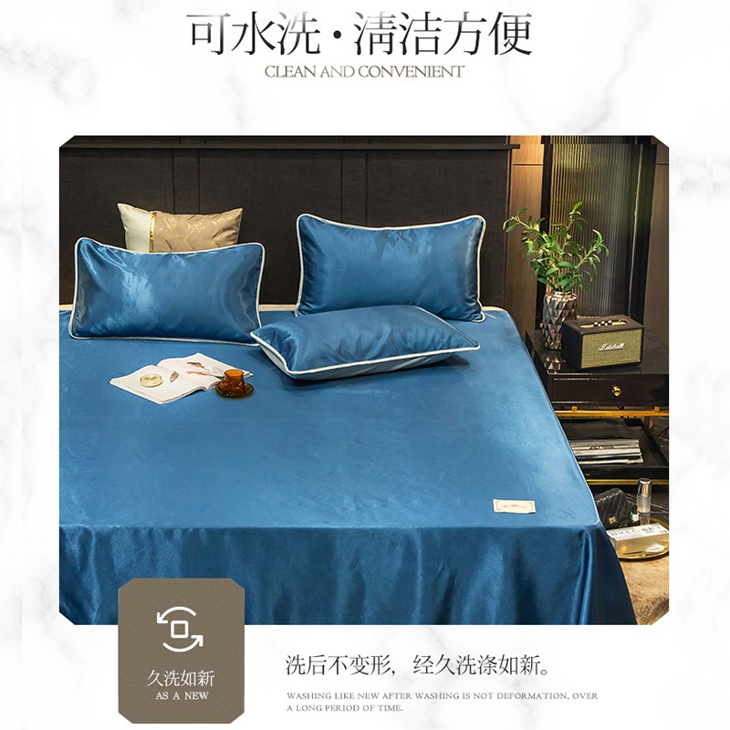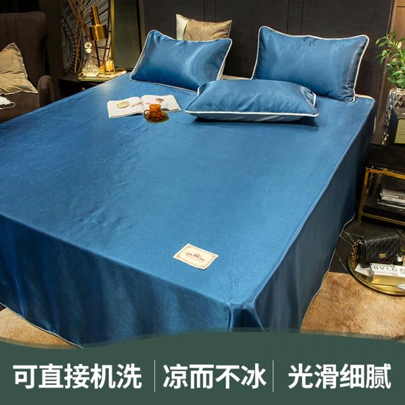 无印纯色床单款冰丝凉席三件套可机洗【冰丝面料(聚酯纤维)/贵族-蓝】 |