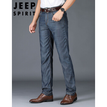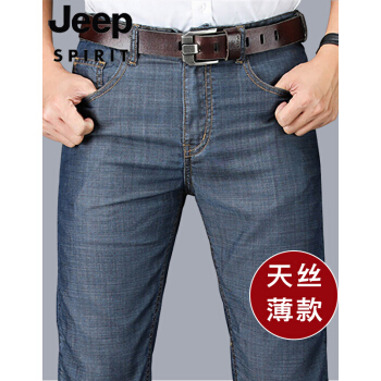 JEEP牛仔裤男宽松夏季薄款天丝修身直筒长裤商务休闲高腰大码弹力冰丝中老年爸爸装男士裤子 J8041灰蓝色 33 |